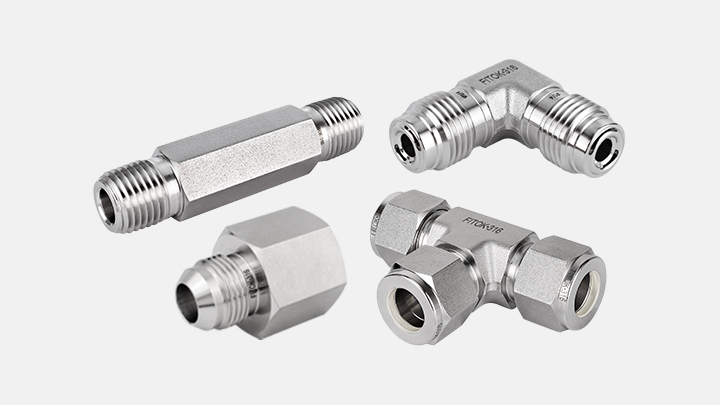 提供多种材质(316/316L 不锈钢、合金、黄铜),多种类型的接头产品,如:适用于半导体应用的气瓶接头、面密封接头、焊接接头;适用于通用工业及氢气应用的卡套接头、螺纹接头;适用于高压连接的锥面螺纹接头、中高压转换接头;适用于油气行业的注脂接头。可依客户实际需求选择。