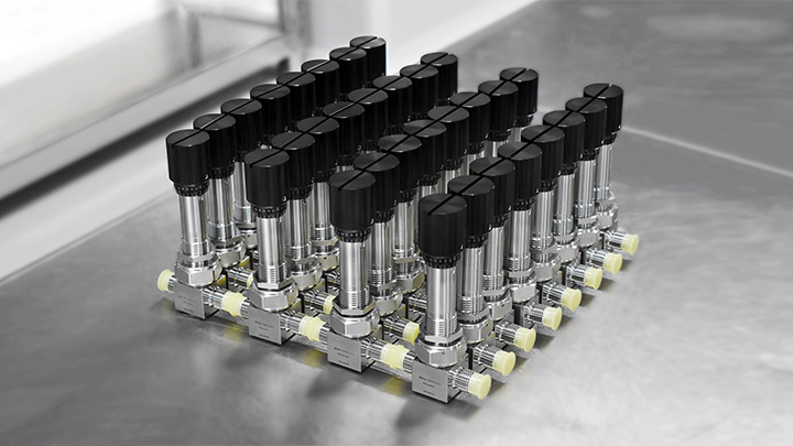 MU 系列波纹管密封计量阀,采用复位弹簧结构设计,无空行程,可精准重复性地设定流量,模块化设计,降低维护成本。有计量型阀杆头和调节型阀杆头可供选择。最大工作温度可达 482°C (900 °F),防误操作锁紧设计,阀门逆时针开启 6 圈到最大流量,多种端口类型及尺寸可选。