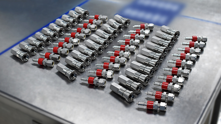 QC Series General Service Quick Connects feature a push-to-connect coupling for quick and easy operation. Available in single-end shutoff, double-end shutoff, and full-flow models, they support working pressures up to 3000 psig (207 bar). Constructed from stainless steel or brass, they include a reliable, leak-tight O-ring seal for vacuum or pressure applications. These quick-connects are interchangeable with other key manufacturers’ products and feature a locking mechanism with a large contact area, ensuring secure stem retention. Stem protectors, body protectors, and keyed options are offered.