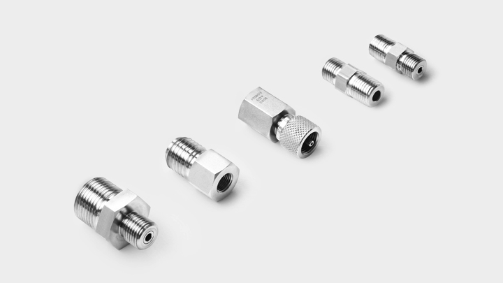 QT 系列测试接头,不带阀的接头工作压力可达 345 bar (5000 psig), 带阀的接头工作压力可达 207 bar (3000 psig)。HQT 系列高压测试接头,工作压力可达 690 bar(10000 psig)。端接材料有 316 不锈钢和 304 不锈钢可选,工作温度与密封圈相关,氟橡胶 (FKM) 密封从-23°C 至 204°C (-10°F 至 400°F), 丁腈橡胶 (NBR) 密封从 -23°C 至 121°C (-10°F 至 250°F),不同规格还有单向阀和保护帽可供选择。