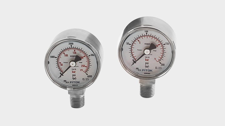 GC 系列洁净气体压力表是小尺寸清洁型压力表,适用于一般洁净气体、腐蚀性和非腐蚀性气体。采用特殊清洁工艺,脱脂脱油处理,有下端安装或中心向后安装方式可选。表盘尺寸为 50 mm,最高量程可达 6,000 psi,最大介质温度为 100℃(212℉),可选择真空压力表用于真空应用。