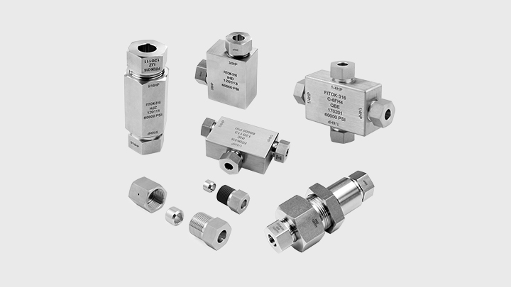 60H 系列高压锥面和螺纹接头采用高强度 316 不锈钢材质,最大工作压力可达 60, 000 psig (4,137 bar),在各种高压工况中均能提供可靠的连接,搭配风暴娱乐 T60H 系列钢管可获得最佳使用效果。接头在 1/4"、3/8" 和 9/16" 尺寸下有直通、弯头、三通和四通可选,可选择防振压盖组件替换标准压盖,延长管路系统的振动疲劳寿命。